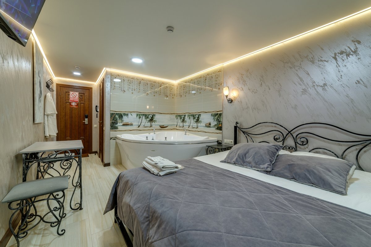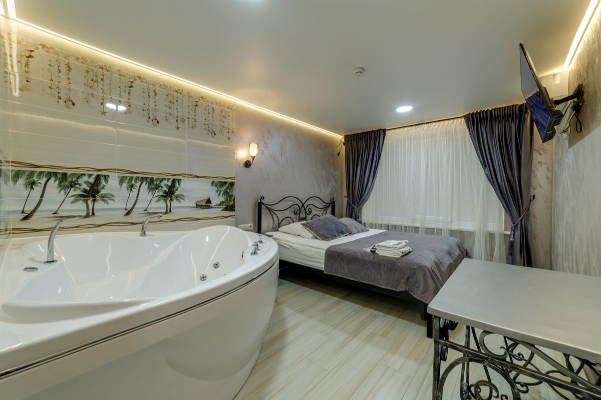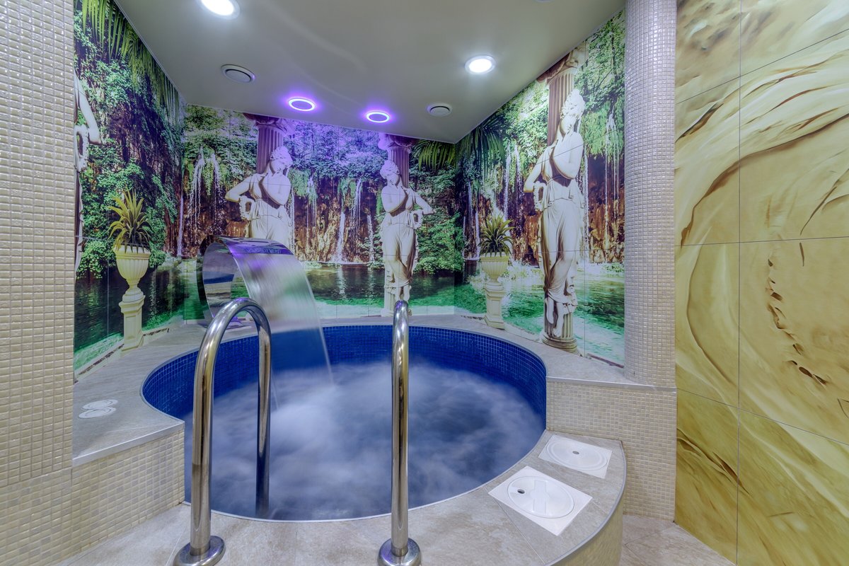 А если вы входите в число тех счастливчиков, кто хорошо реагирует на смену температур - вас ждут джакузи и бассейн. Именно контрастным водным процедурам приписывается максимальный тонизирующий и общеукрепляющий эффект. Мы внимательно следим за качеством купальной воды, у нас установлено современное оборудование для ее очистки - ведь мы знаем, насколько это важно для удобства и спокойствия наших гостей.