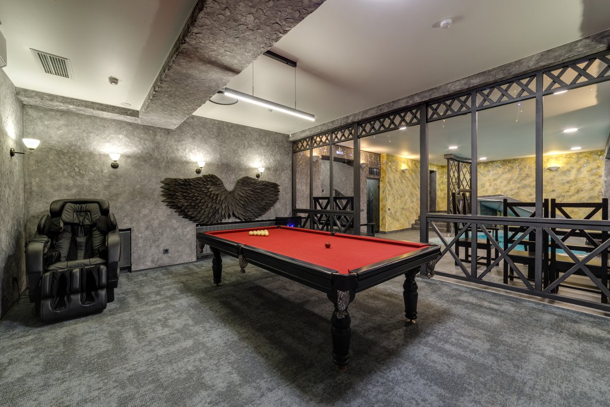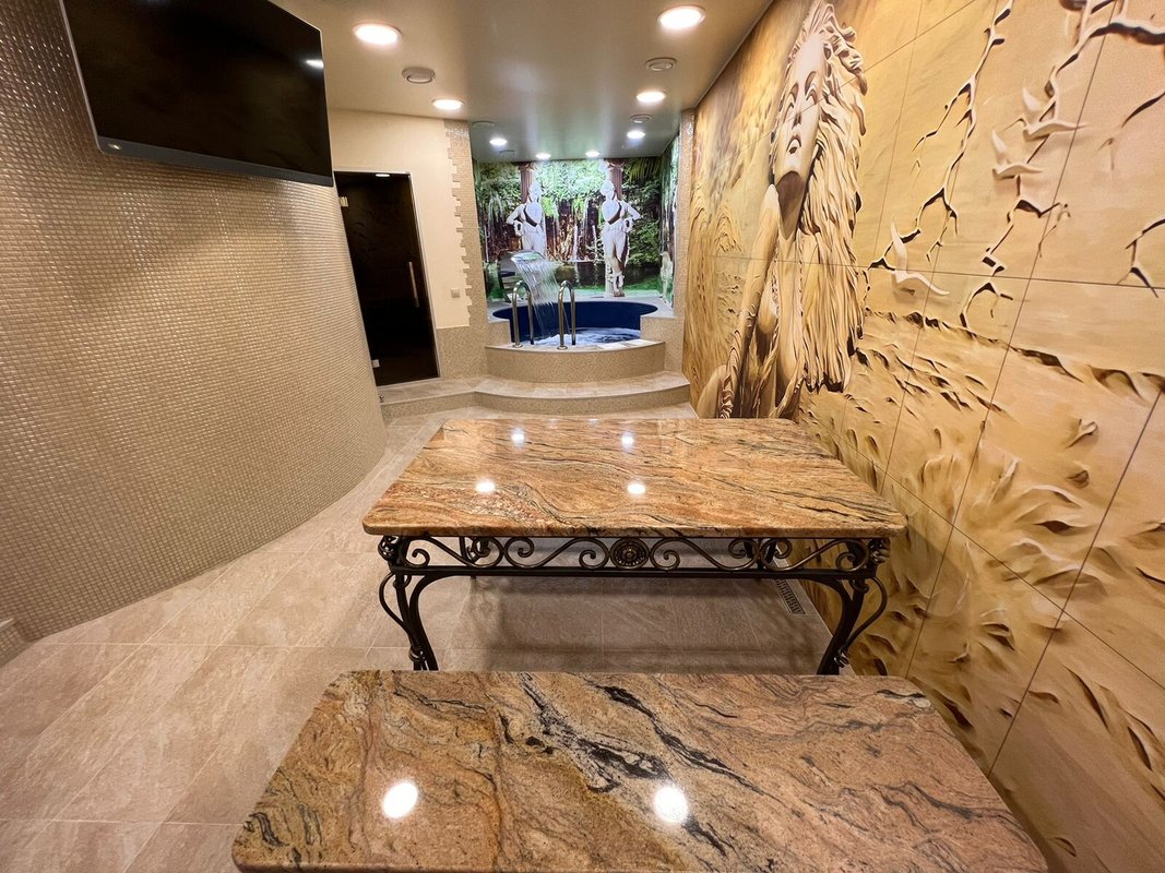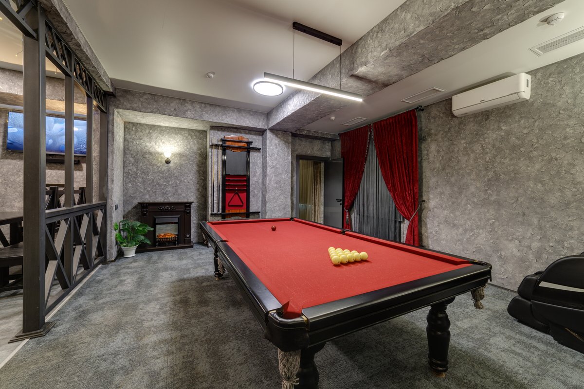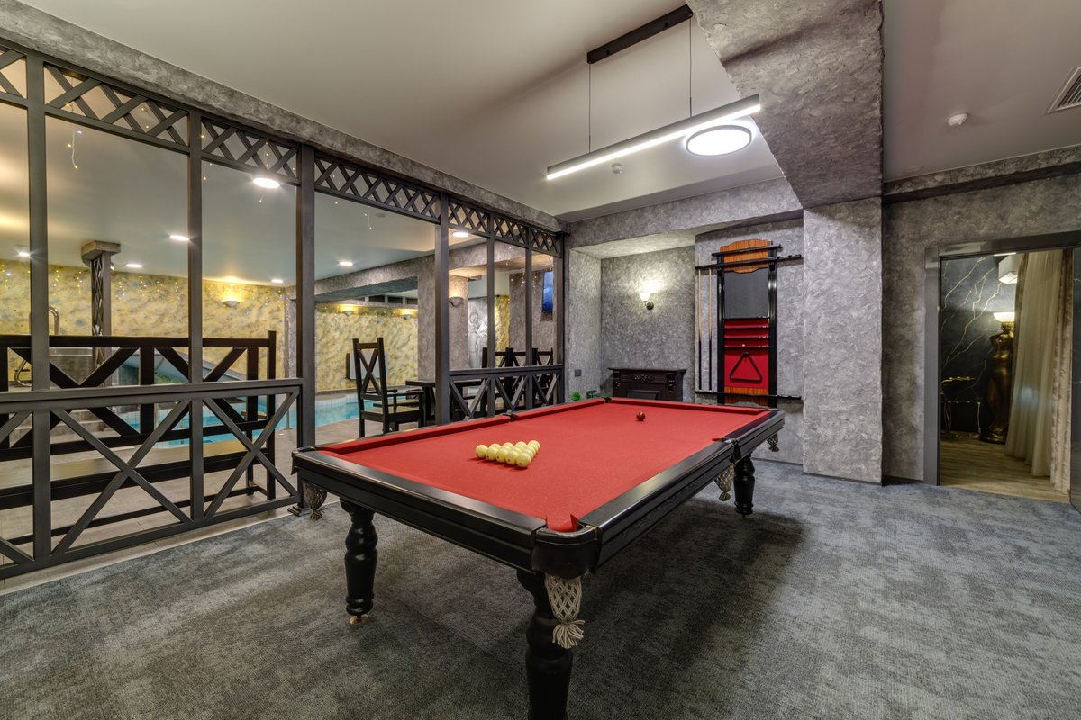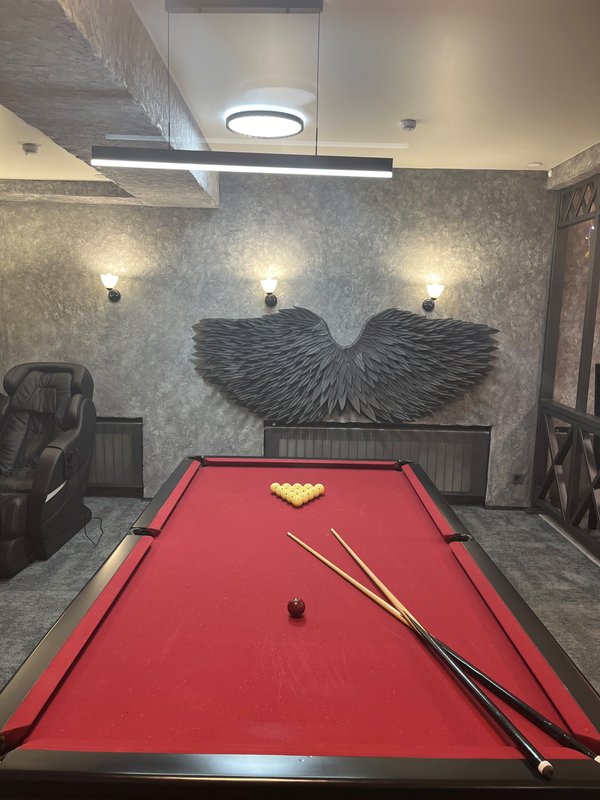 Не хочется в бассейн? Не беда! Вместо этого можно провести время в нашей комнате отдыха. Мы ставили своей целью создать здесь уютный, практичный интерьер из преимущественно натуральных, безопасных материалов, подобрать мебель, которая будет в равной степени удобной и эстетичной. Надеемся, что он придется вам по душе! Для поддержания атмосферы отдыха мы можем предложить вам бильярд, кальян и караоке. Также у нас имеется бар, а при необходимости вы можете прийти и со своей едой - мы не возражаем! Главное помните, что плотная трапеза незадолго перед посещением парной - это не самая удачная идея, по мнению терапевтов. А вот после парной она совсем не повредит!
